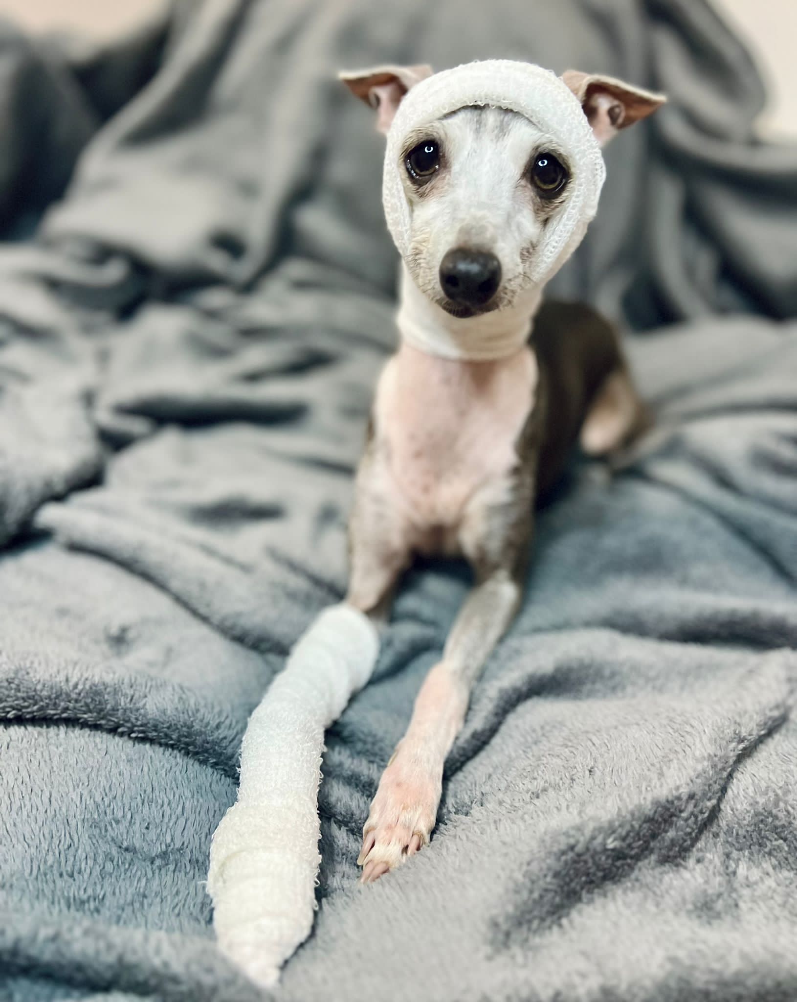 Ak je pes poranený a krváca, najprv zastavte krvácanie stlačením rany, obväzom alebo tlakovým obväzom. Potom použite sterilné krytie a obväz, ktorý pomôže udržať ranu čistú. Krytie chráni ranu pred preniknutím baktérií, ktoré sú najčastejšou príčinou infekcií rany. Na fixáciu obväzu alebo zabezpečenie kompresie môžu byť užitočné aj elastické obväzy.